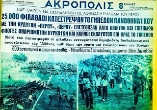 50 χρόνια από το ντέρμπι – ντροπή των αιωνίων Posted: 16 Jun 2014 06:00 AM PDT "Σικέ"ή η ζέστη που κόβει τα πόδια στην παράταση; Την αλήθεια δεν την μάθαμε ποτέ. Το WE πηγαίνει τον χρόνο πίσω μισό αιώνα στο γήπεδο της Λεωφόρου και στον ημιτελικό Παναθηναϊκού – Ολυμπιακού 17 Ιουνίου 1964. Το ελληνικό ποδόσφαιρο και η ελληνική κοινωνία έρχονται αντιμέτωποι με το ξαφνικό, αυθεντικό, αναρχικό και ενωτικό ξέσπασμα των φιλάθλων δύο αιώνιων αντιπάλων. Οι οπαδοί του Παναθηναϊκού και του Ολυμπιακού ένωσαν αρχικά τις φωνές τους και στην συνέχεια τις δυνάμεις τους για να δείξουν την αγανάκτηση τους σε κάτι που στα μάτια τους φαινόταν "σάπιο". Έναν ημιτελικό κυπέλλου που οι ποδοσφαιριστές και των δύο ομάδων φαίνονταν κατώτεροι των περιστάσεων και της φανέλας που φορούσαν. Από την κούραση και την ζέστη της ημέρας σύμφωνα με τους τελευταίους, από την επιθυμία τους να υπάρξει επαναληπτικός αγώνας για να καρπωθούν από τις εισπράξεις σύμφωνα με τους φιλάθλους. Ο αγώνας, υπό τα βλέμματα 25.000 φιλάθλων και των δύο ομάδων στο γήπεδο της Λεωφόρου , κύλισε υποτονικά στην κανονική του διάρκεια και έληξε 1-1, αποτέλεσμα που οδηγούσε σε παράταση όχι όμως σε πέναλτι αν παρέμενε ισόπαλο το αποτέλεσμα αλλά σε επαναληπτικό αγώνα ο οποίος θα γινόταν στο στάδιο Καραϊσκάκη. Οι παίκτες συνέχισαν να παίζουν ακόμη πιο υποτονικά και να χάνουν ευκαιρίες που όπως περιγράφουν οι εφημερίδες της εποχής δεν χάνονται με τίποτα. Οι αποδοκιμασίες πληθαίνουν, έρχονται τόσο από φιλάθλους του Παναθηναϊκού όσο και του Ολυμπιακού και σε λίγο αρχίζουν τα συνθήματα. "Θα μπούμε μέσα", "Απατεώνες", "Αλήτες". Η σταγόνα που ξεχείλισε το ποτήρι ήταν το "άχαστο"του Μίμη Δομάζου στο 112'. Ο κορυφαίος σκόρερ του "τριφυλλιού"αστοχεί από απόσταση τριών μέτρων σε κενή εστία. Τα κιγκλιδώματα αρχίζουν να δονούνται. Διαιτητές, παίκτες και "παγκίτες"δεν πρόλαβαν να πάρουν ανάσα καθώς οι φίλαθλοι που είχαν σπάσει τα κιγκλιδώματα, είχαν σπάσει πλέον και τον αστυνομικό κλοιό και προέλαυναν στα αποδυτήρια. Καταφεύγουν στο κλειστό του μπάσκετ όπου και εκεί γίνονται αντιληπτοί. Μέχρι να έρθει η αστυνομία πέφτουν μερικές ψιλές και τελικά όσοι είχαν λόγο να κρύβονται από το μαινόμενο πλήθος φυγαδεύονται στο μυστικό "δωματιάκι"όπου δεν ξεμύτισαν παρά αργά το βράδυ. Στα αποδυτήρια είχε βρεθεί και ο ρεπόρτερ της "Βραδυνής"ο οποίος συνομίλησε με τον Ολλανδό διαιτητή: "Ο παλύψηλος διαιτητής κ. Μάρτενς έντρομος μου εξηγούσε την απόφασι του να διακόψη τον αγώνα, ενώ κάθε τόσο κοιτούσε προς την πόρτα περιμένοντας από στιγμή σε στιγμή να δεχθή επίθεσι, ανεύθυνος στην πραγματικότητα αυτός. «Την στιγμή που οι θεαταί τράνταζαν τα κάγκελα πίστεψα ότι θα γινόταν ή συντέλεια του κόσμου. Άθελα μου θυμήθηκα τον διαιτητή του αγώνος Αργεντινής – Περού και σκέφθηκα μήπως ήμουν εγώ ο υπεύθυνος της μανίας του κόσμου (σ.σ. Ο αγώνας Περού – Αργεντινής είχε πραγματοποιηθεί τρεις εβδομάδες νωρίτερα για την προκριματική φάση των Ολυμπιακών του Τόκυο, στην Λίμα. Ο διαιτητής του αγώνα ακύρωσε γκολ των γηπεδούχων με αποτέλεσμα το πλήθος να ξεσπάσει και να υπάρξουν 318 νεκροί. Το σύνθημα "Περου – Περού"ακούστηκε πολλές φορές κατά την διάρκεια του ημιτελικού στην Λεωφόρο). Ήταν αδύνατον να συνεχίσω το μάτς. Αν μέναμε ακόμη ένα λεπτό δεν ξέρω αν τώρα θα είμαστε ζωντανοί. Όσα χρόνια και αν περάσουν θα θυμάμαι με φρίκη την εικόνα αυτή". Στο γήπεδο πλέον σχεδόν το σύ